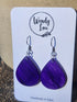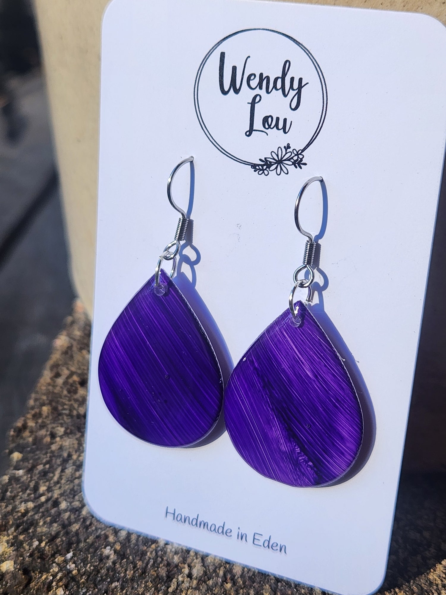 These beautiful purple earrings are made using hand painted synthetic paper and covered with resin which makes them really lightweight to wear. The back is a slightly lighter opaque purple which compliments the front nicely.