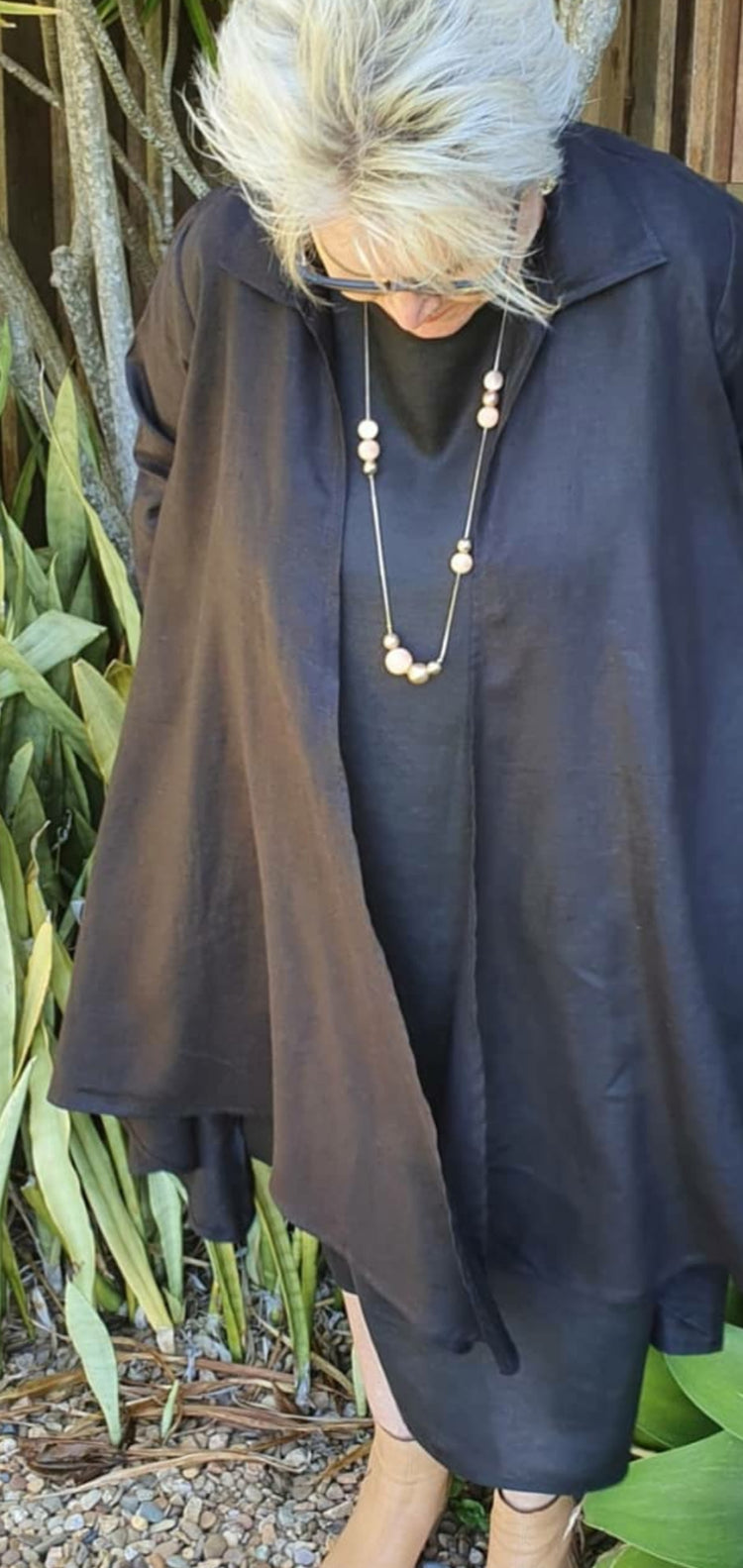 Introducing Michelle, a plus-size linen jacket that's more than just a piece of clothing – it's a journey back to the 60s, an era of undying elegance and iconic style. Michelle, with her captivating waterfall design, is reminiscent of classic fashion that never fades. Her flat collar gracefully transitions into long sleeves, which offer the versatility to be turned up, adding a touch of contemporary to the vintage. But Michelle isn’t just about appearances. She packs practicality with her two deep hidden pockets, ensuring you have a stylish space for essentials. Whether you choose to pair her with our mesmerising Millie dress or decide to go casual with jeans and a simple top, Michelle guarantees you’ll stand out.