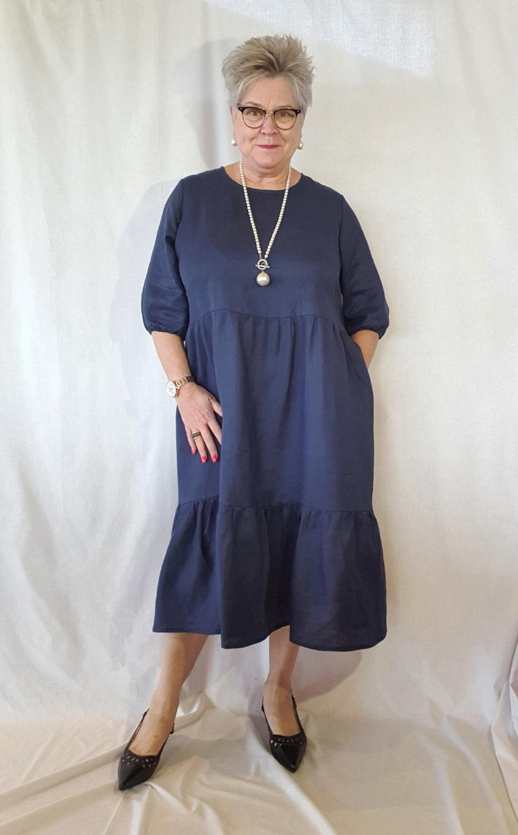 Introducing Lucy, a plus-size linen dress that echoes the allure of femininity with every layer. Crafted with love and care, our Lucy Linen Dress invites you to lose yourself in its dreamy layers, each designed to make you feel as though you're floating on air. The first tier, strategically placed under the bust line, ensures a flattering silhouette, accentuating the slimming effect. The traditional Linen with Luv neckline complements the adjustable longer sleeves, allowing you to style Lucy precisely how you feel. And for the twirl enthusiasts – Lucy’s two beautiful layers are perfect to envelope yourself in a dance of fabric. Let's not forget the pockets, a fabulous addition to this already captivating dress.