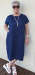 Our Maxine Linen Dress effortlessly combines comfort with chic. Handcrafted from 100% natural linen, Maxine boasts a snug fit, making it stand out in your wardrobe. Designed with a more fitted sleeve and bodice that subtly accentuates the cleavage, this plus-size linen dress is versatile and suited for various occasions. Two front slit pockets add a dash of flair, while the little slit hem at the back provides an added touch of sophistication. Maxine is the must-have "Little Black Dress" that everyone needs. Available in classic Black and Navy, this dress has gained immense popularity. For reference, our model, a size 18G, is wearing a size 4.