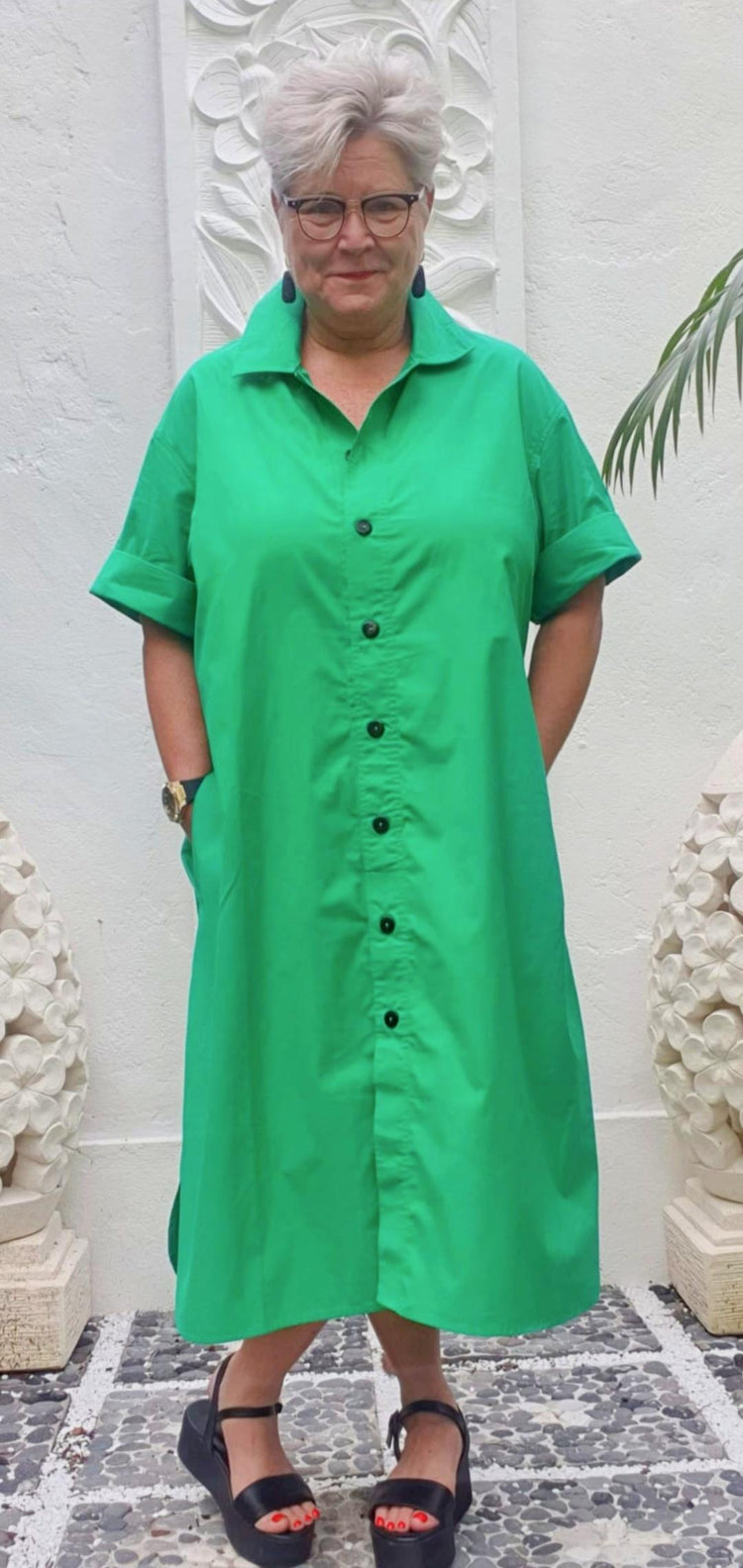 Hello, Sally! Every wardrobe's secret weapon. Whether you're rushing out for errands or prepping for a night out, Sally's got you covered. This hand-made gem, crafted from 100% poplin cotton, is the epitome of style meets comfort. And let's talk details: a collar that can stand tall or lay flat, sleeves that love a good roll-up, two generous pockets for those "just-in-case" items, and a scalloped hemline adding that touch of playful elegance. Not to forget, the contrasting black buttons that give her an extra dash of pizzazz. If you're searching for that perfect blend of timeless and trendy, Sally's your girl!